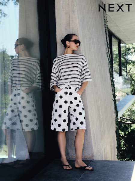 Yours Curve Black Abstract Print Crinkle Tassel Shorts