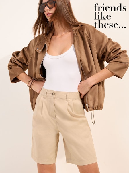 Friends Like These Neutral Pleated Chino Bermuda Shorts
