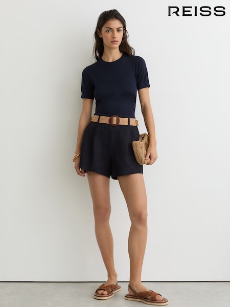 Reiss Navy Matilda Jacquard Belted Shorts with Linen