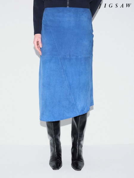 Jigsaw Blue Suede Midi Asymmetric Skirt