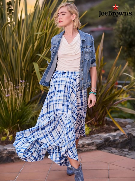 Joe Browns Blue Summer Check Hanky Hem Skirt