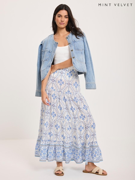 Mint Velvet Blue Floral Print Maxi Skirt