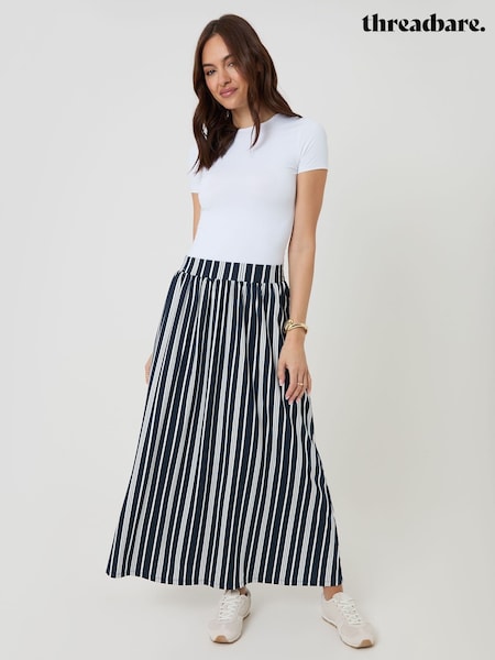 Threadbare Blue Print Jersey A-Line Maxi Skirt