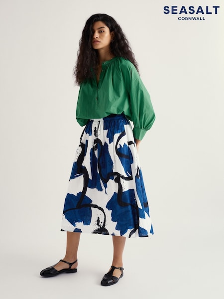 PixieGirl Petite Blue 100% Cotton Patch Pocket Midi Skirt