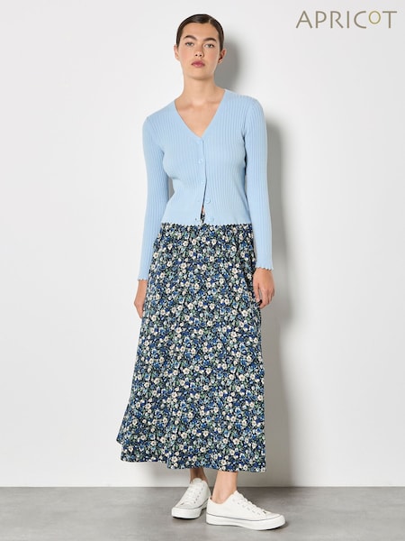 Apricot Blue Floral Print A-Line Midaxi Skirt
