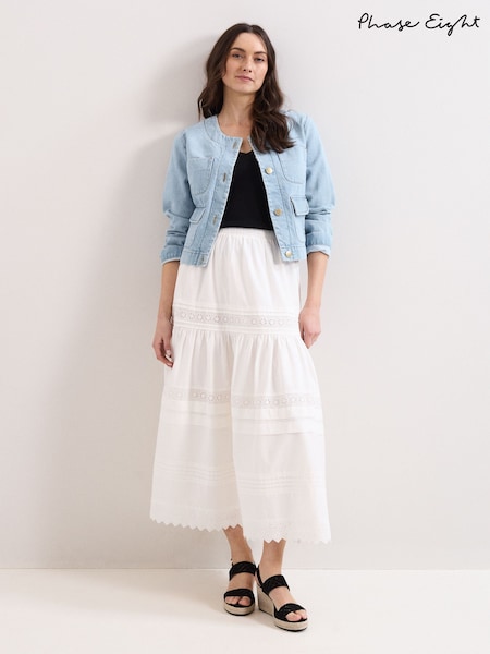 Blue/White Lemon Print Summer Wrap Midi Skirt