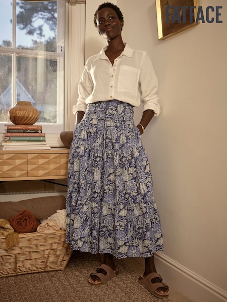 FatFace Billy Navy Woodblock Bloom Midi Skirt