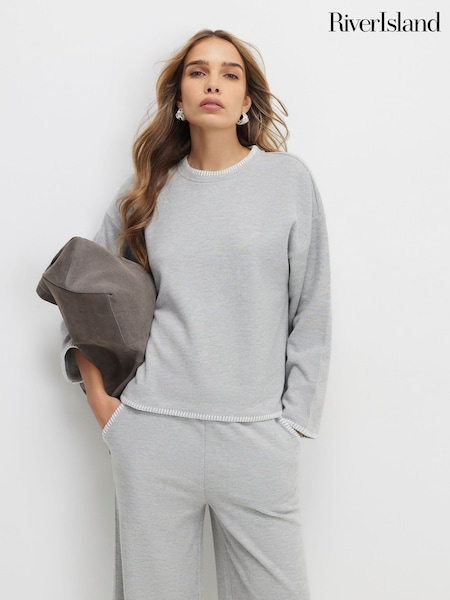 River Island Grey Long Sleeve Whipstitch Cosy Sweatshirt