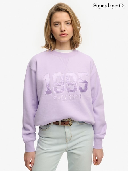 Superdry Purple Varsity Satin Applique Crew Neck Sweat Tops