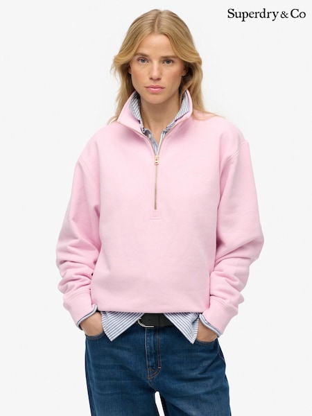 Superdry Pink Essential Logo Embroidery Half Zip Sweatshirt