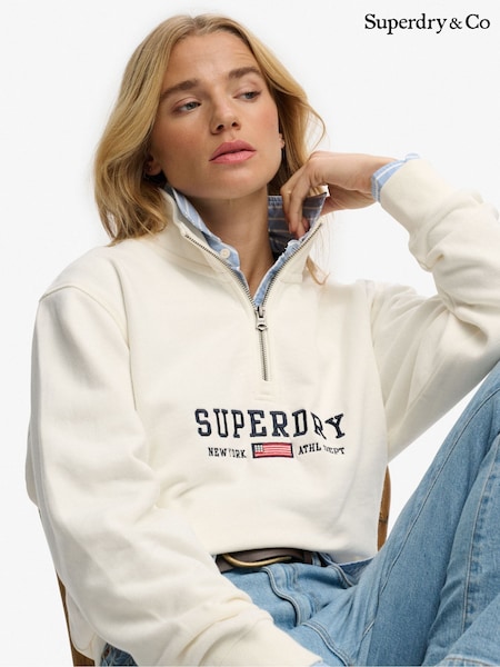 Superdry Cream Athletic Essential Graphic Half Zip Sweat Top