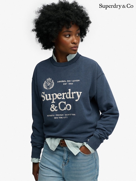 Superdry Navy Luxe Casual Loose Fit Crew Neck Sweatshirt