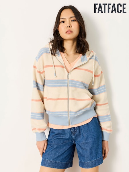 FatFace Flora Multi Textured Stripe Zip Through Hoodie