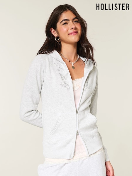 Hollister Grey Graphic Zip Through Hoodie