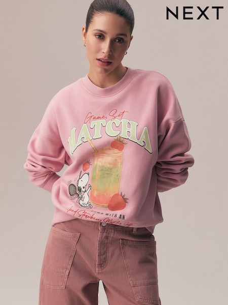 Light Pink Snoopy Matcha Graphic Sweatshirt