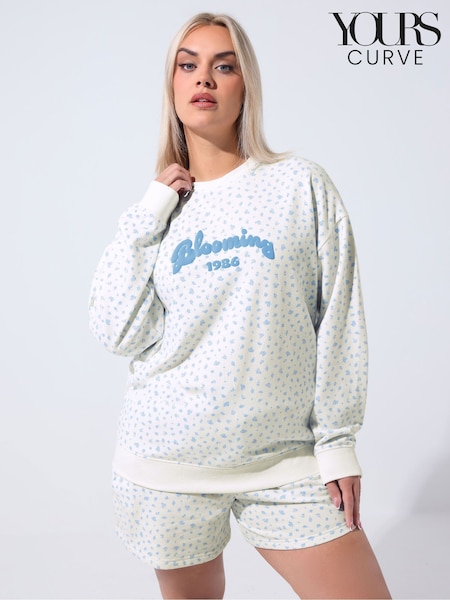 Yours Curve White Limited Ditsy Printed Sweat Top