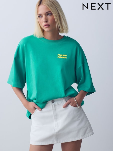 Green Cotton Graphic Oversized T-Shirt