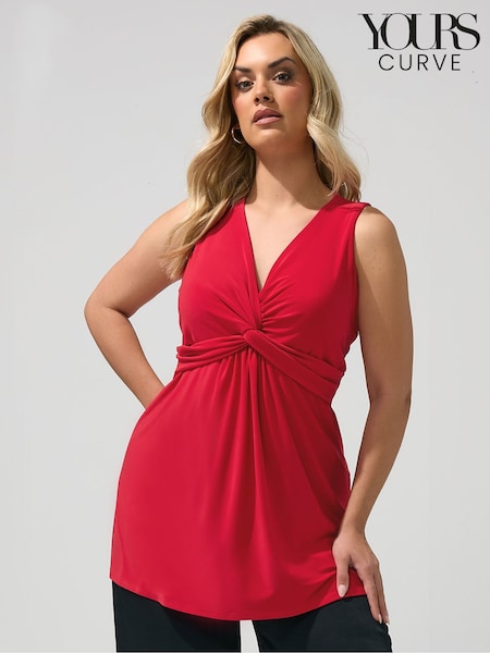 Yours Curve Red London Sleeveless Knot Front Top