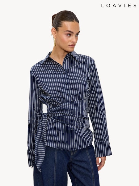 JD Williams Blue Twill Button Through Grid Check Blouse