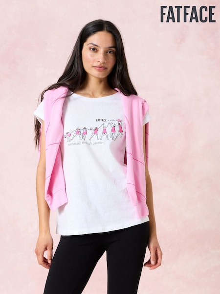 FatFace Paige White 100% Cotton Jersey V-neck Shirt