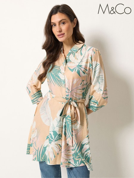 M&Co Pink Abstract Floral Belted Tunic Shirt