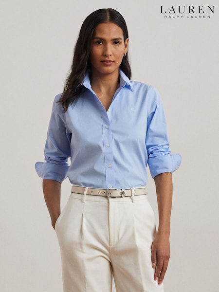Lauren Ralph Lauren Blue Jamelko Stripe Embroidered Logo Shirt