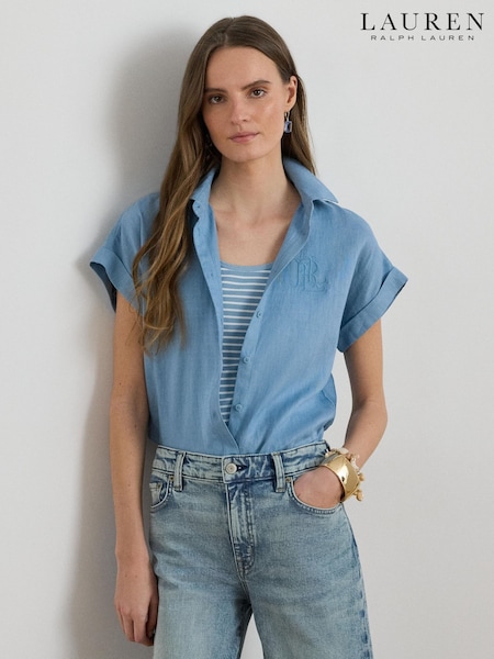 Lauren Ralph Lauren Blue Broono Short Sleeve Button Front Shirt