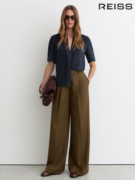 Reiss Navy Aurelia Cotton Cheesecloth Pleated Top