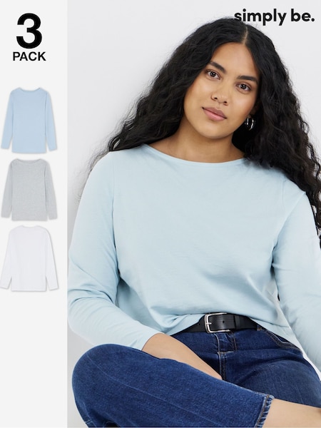 Simply Be Grey Long Sleeved Slash Neck Tops Pack 3
