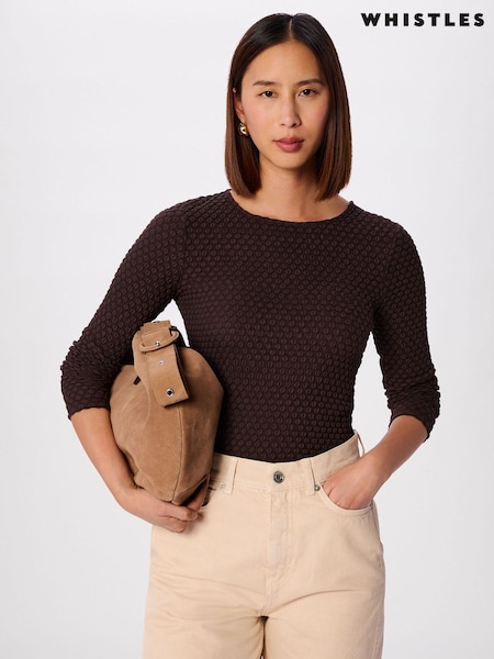 Whistles Brown Textured Circle Jersey Top