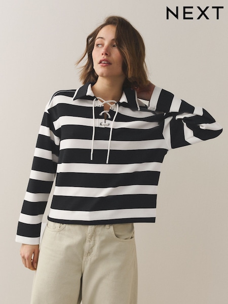 Black/Ecru Stripe Striped Lace-Up Rugby Top