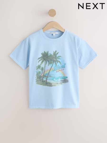 Blue Graphic Washed Crew Neck Slimline T-Shirt