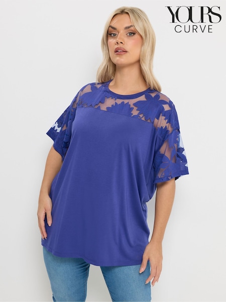 Yours Curve Blue Boxy Burnout T-Shirt