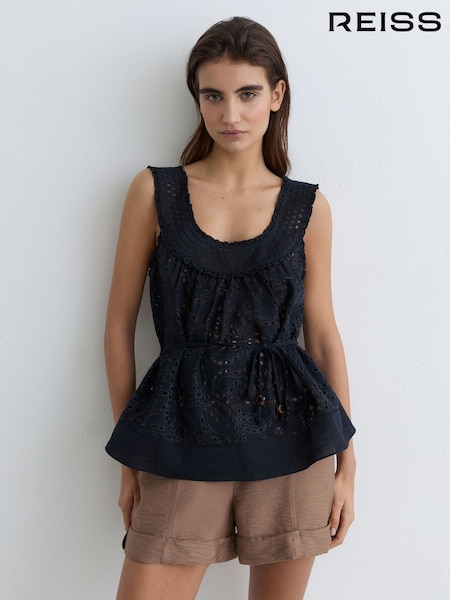 Reiss Navy Larna Cotton Broderie Anglaise Cami Top