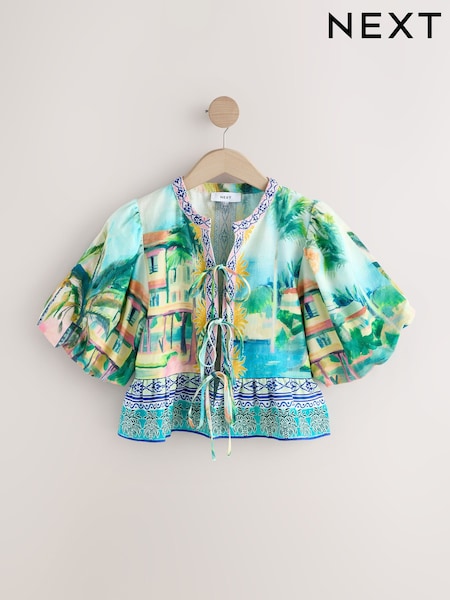 Blue Scenic Puff Sleeve Top