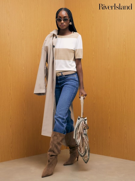 River Island Brown Short Sleeve Knitted Stripe Short Sleeve Top