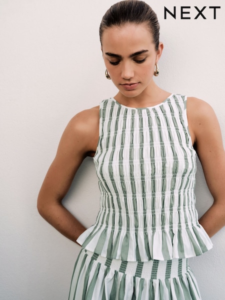 Oliver Bonas Green Blue & Green Striped Chunky Knitted Tank Top