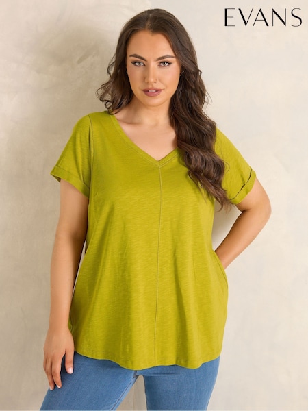 JD Williams Green Crochet Trim Linen Mix Popover Top