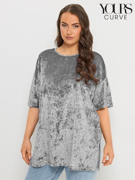 Yours Curve Grey Velour Drop Shoulder Sleeve Top