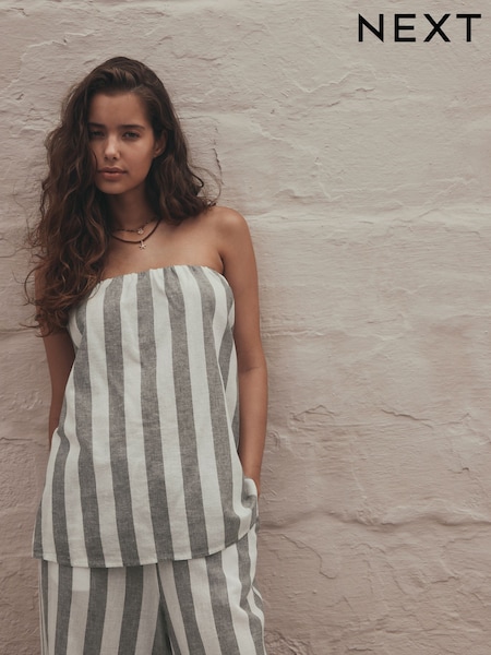 Reiss White/Black Remie Viscose Linen Polka Dot Ruched Strapless Top