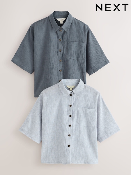 Slate/White Stripe 2 Pack Textured Short Sleeve Shirts With Linen