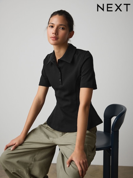 Black Peplum Polo Neck Short Sleeve T-Shirt