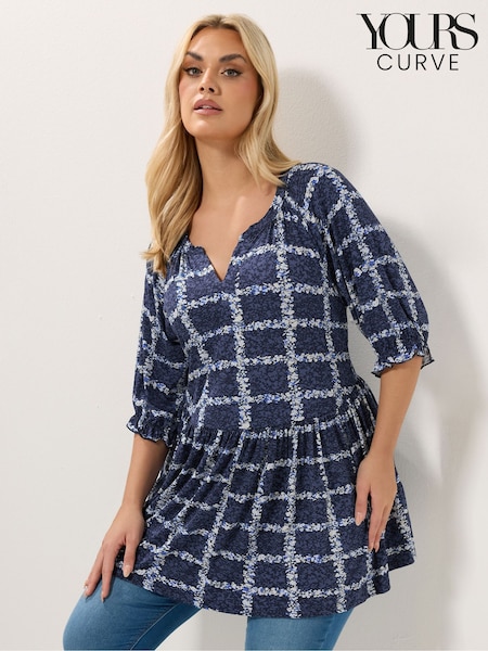 Yours Curve Blue Notch Neck Frilled Hem Blouse