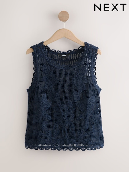Navy Blue Crochet Sleeveless Tank Top