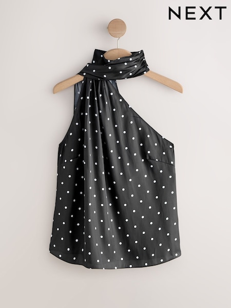 Navy Polka Dot Satin Halter Top