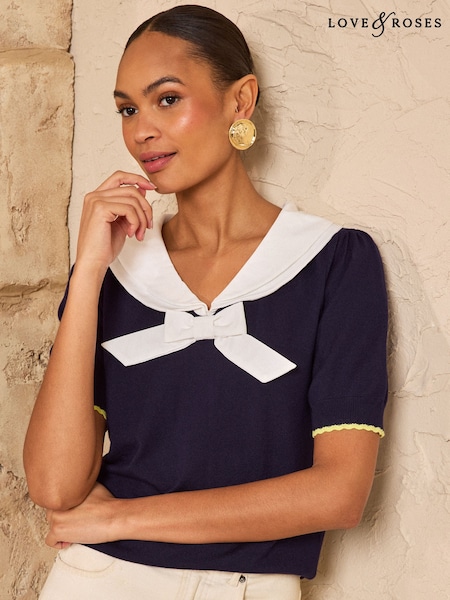 Love & Roses Navy Sailor Bow Knitted Top