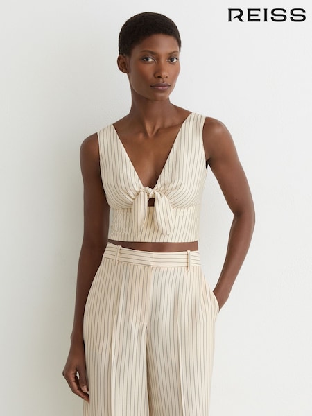Reiss Cream/Black Jayce Pinstripe Tie-Front Cropped Top