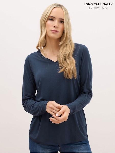 Long Tall Sally Blue Long Sleeve V-Neck Top