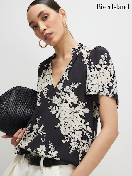 River Island Black Short Sleeve Turn Back Cuff T-Shirt