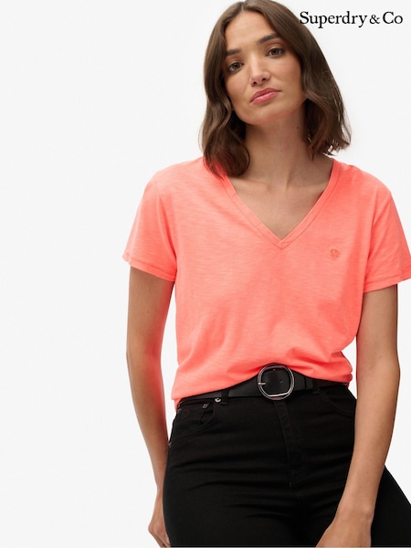 Superdry Black Chrome Slub Embroidered V-Neck T-Shirt